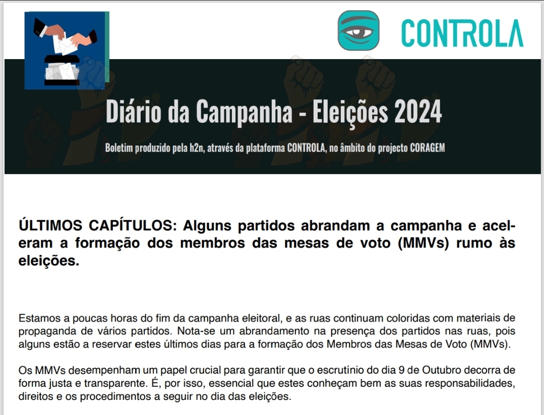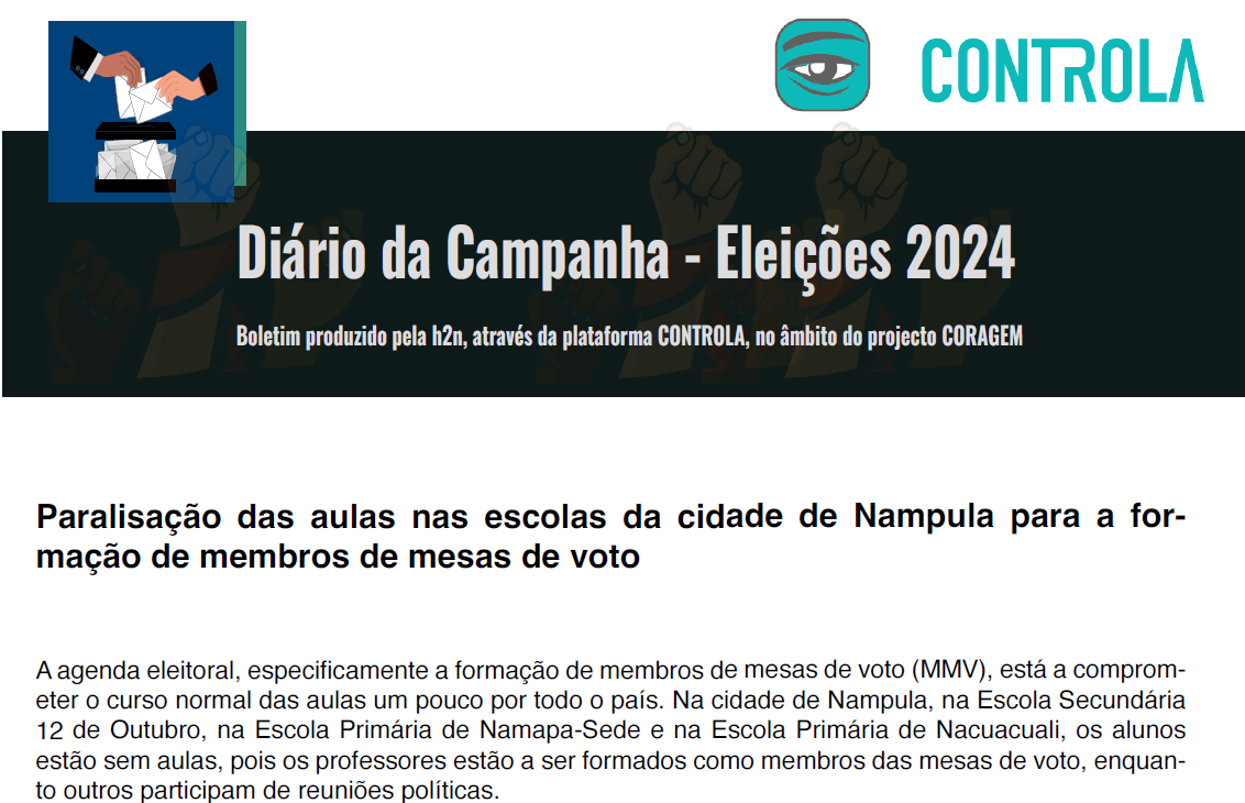 O Controla é uma plataforma desenvolvida como parte do projecto CORAGEM, um programa financiado pela USAID para capacitar as rádios comunitárias. Criada em parceria com jornalistas, desenvolvedores e órgãos de comunicação, a plataforma tem como objectivo combater a falta de memória durante campanhas eleitorais e na governação em Moçambique. O Controla reúne e monitora as promessas feitas pelos candidatos, incentivando a transparência e o engajamento dos cidadãos.